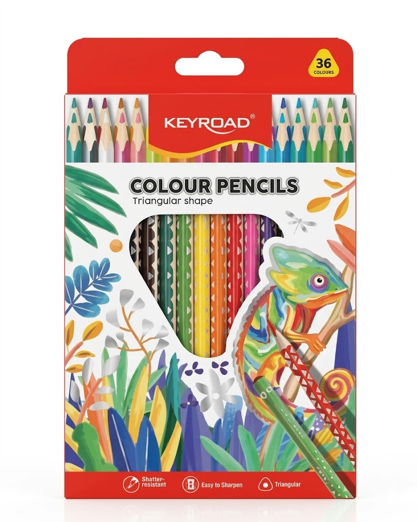 طقم ألوان خشب احترافي من كى رود يحتوي على 36 لونًا متنوعًا ومشرِقًا من أقلام التلوين الخشبية ، مصمم بهيكل مثلث طبي يوفّر تجربة استخدام مريحة وآمنة للأطفال والطلاب ، يساعد التصميم المثلث على تحسين طريقة الإمساك بالقلم، ويمنع انزلاقه أثناء التلوين، مما يساهم في تعزيز التحكم والدقة ، يوفر درجات لونية غنية تعزز الإبداع وتلائم الأنشطة المدرسية والفنية ، الألوان ناعمة وسهلة الدمج وتغطي الورق بدرجات واضحة وجذابة ، الأقلام مصنوعة من خشب عالي الجودة، وسنها قوي لا يتكسر بسهولة مما يجعلها مثالية للاستخدام المدرسي والفني.