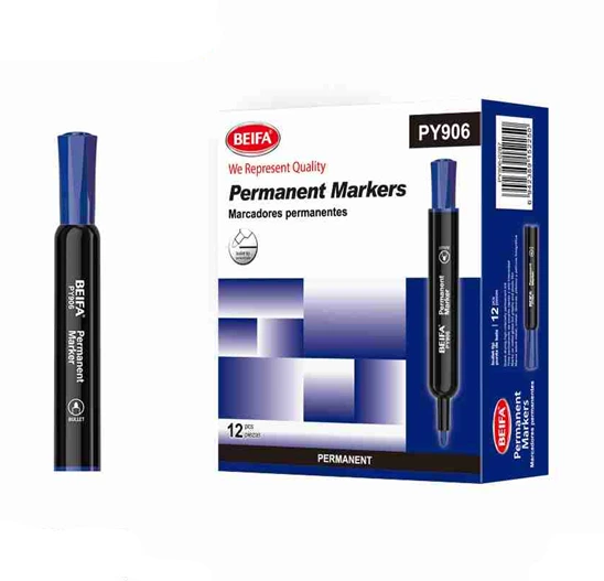 قلم ماركر دائم عالي الجودة من بيفا، موديل PY906-02B7، مصمم لتوفير كتابة ثابتة وواضحة على مختلف الأسطح. يتميز بحبر أزرق دائم سريع الجفاف يضمن ثبات النصوص دون تلطيخ أو فوضى. مع سن مدور، يوفر تدفق حبر متوازن وخطًا منتظمًا. الماركر مثالي للاستخدام على الورق، الكرتون، البلاستيك، الزجاج، والمعادن، مما يجعله مناسبًا للمكاتب، المدارس، والأنشطة الصناعية الخفيفة. تصميمه المريح يضمن تحكمًا ممتازًا أثناء الكتابة لفترات طويلة.