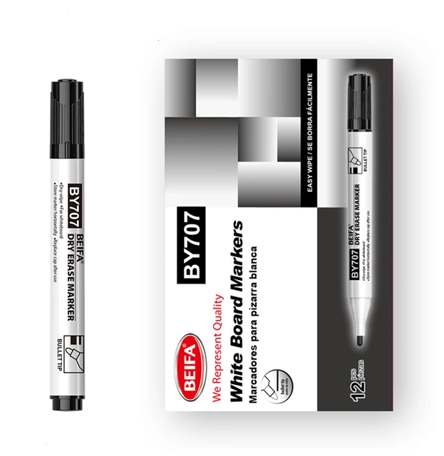 Beifa 高品质白板笔,型号 BY707-01B7,适用于学校、办公室和培训室的白板清晰顺滑书写。 采用清晰稳定的黑色墨水,远近均易阅读;圆头笔尖保证出墨均匀,线条连贯,不易断墨。 易擦除,不易在白板上留下残影或污迹;外形实用且握感舒适,适合高效长时间日常使用。