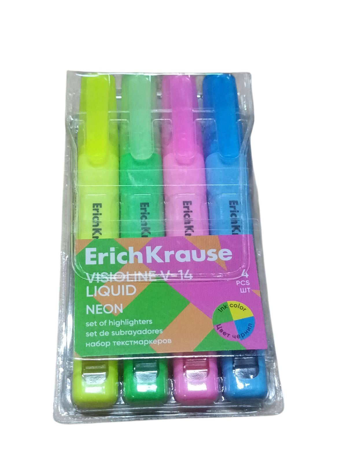- Erich Krause 荧光标记笔套装 液体斜头 4支装 型号58359