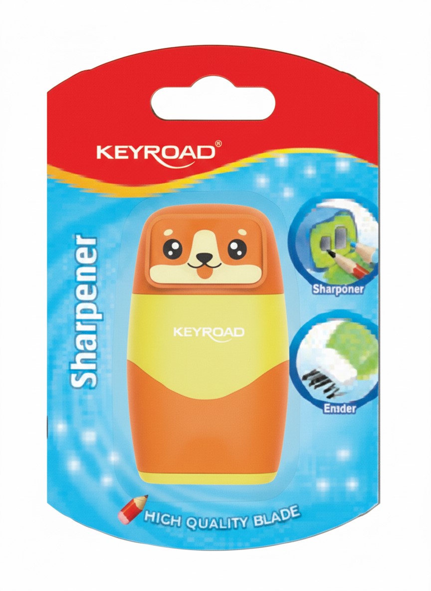 - Keyroad Kunststoffspitzer mit Radierer, 2 Öffnungen, 1 Stück auf Karte, verschiedene Farben, Modell KR973261