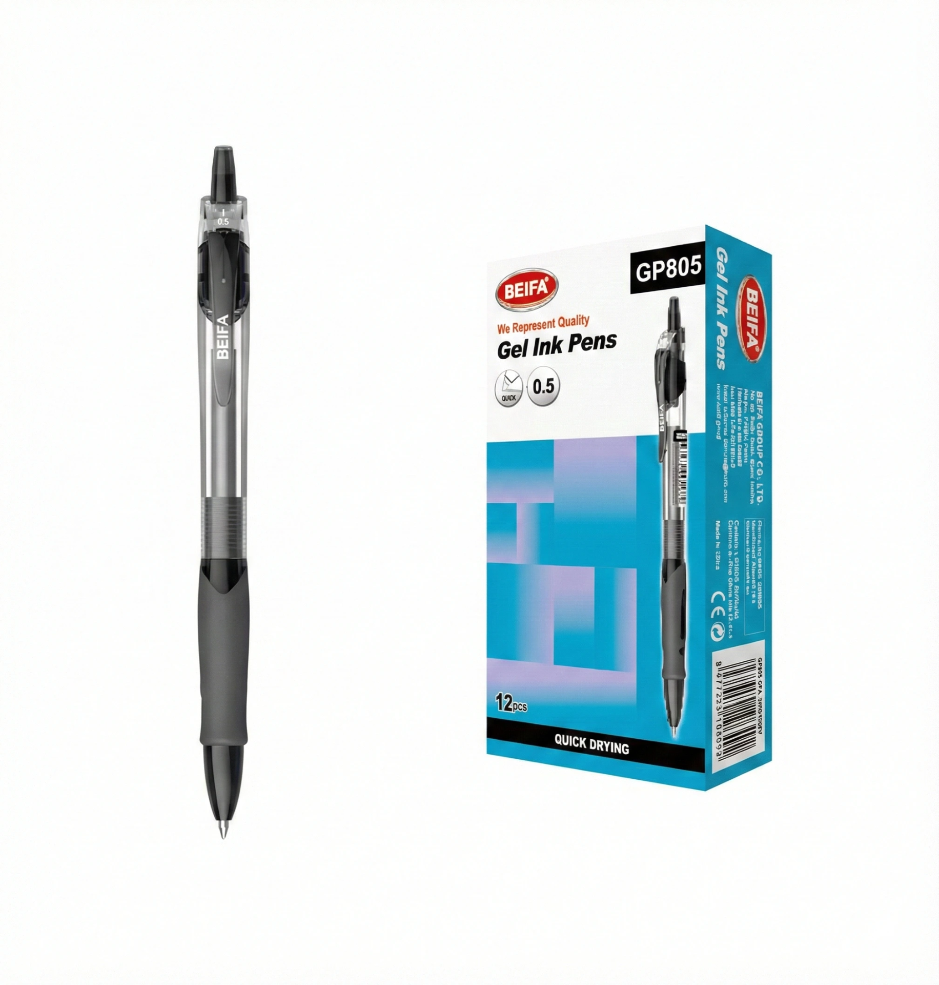 Schnelltrocknender schwarzer Gelschreiber 0,5 mm mit Feder – Beifa, Modell GP805Y-01B7