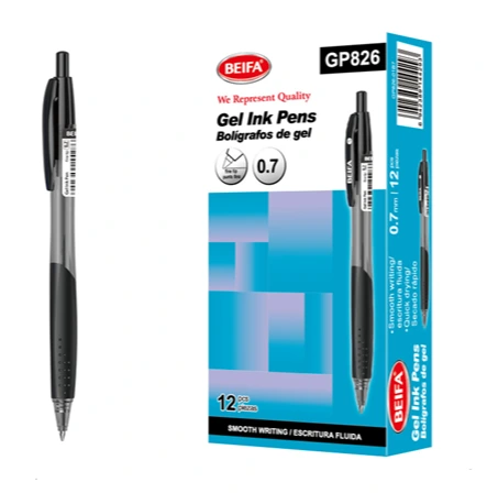 Hochwertiger Beifa-Gelschreiber, Modell GP826-01B7, entwickelt für ein flüssiges und klares Schreibgefühl mit gleichbleibender Leistung – ideal für den täglichen Einsatz in Schule und Büro. Die schnell trocknende schwarze Tinte reduziert Verschmieren und hält das Papier sauber, wodurch der Stift perfekt für schnelles Schreiben und Notizen ist – besonders auch für Linkshänder. Die 0,7-mm-Spitze sorgt für eine deutliche, gut lesbare Linie. Der praktische Druckmechanismus mit Feder ermöglicht ein einfaches Öffnen und Schließen für eine schnelle Nutzung. Das ergonomische Design bietet einen sicheren Griff und reduziert die Ermüdung der Hand bei längeren Schreibphasen – ideal für den dauerhaften Gebrauch.
