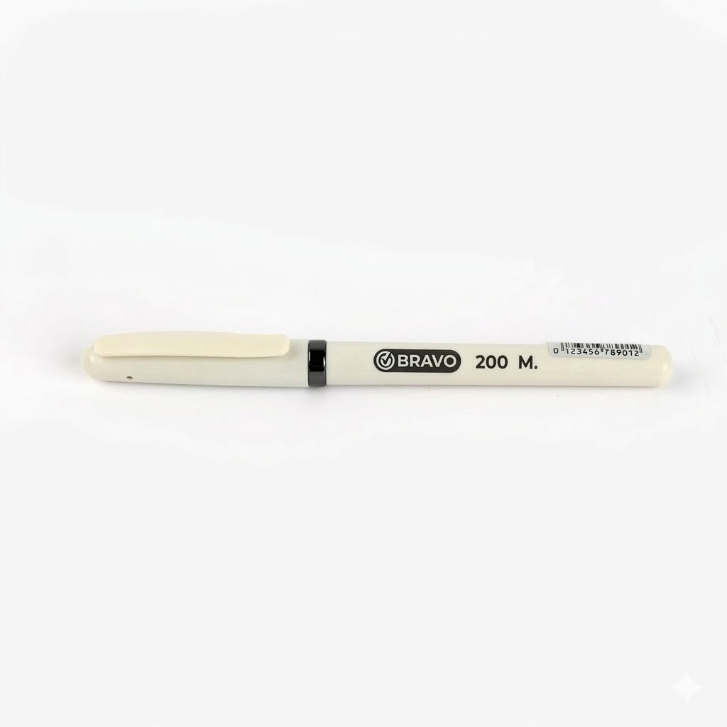 High quality red ballpoint pen model 200 From Bravo with a distinctive 1mm thick tip that makes its line very distinctive and easier to control, it features a comfortable design and long-lasting ink.
