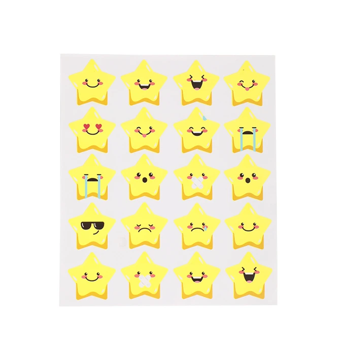 Autocollants en forme d’étoiles Beifa, 2 feuilles, modèle ST7-2A, parfaits pour décorer les cahiers, livres et activités manuelles de manière ludique pour les enfants. Contient 2 feuilles avec des motifs d’étoiles qui aident à motiver et à ajouter une touche joyeuse aux cahiers et carnets d’évaluation. Idéal pour une utilisation à l’école comme récompenses ou encouragements, ou à la maison pour des activités créatives.